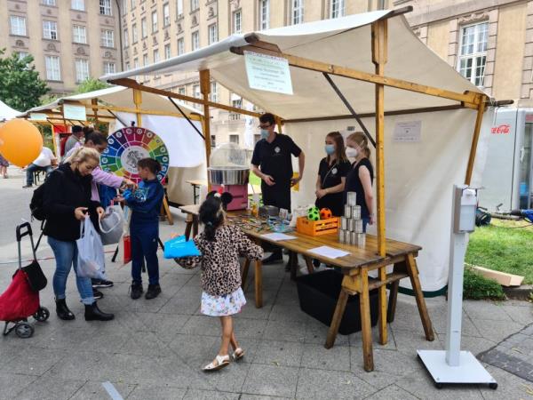 Mit unseren Ständen am Rathaus Schöneberg unterstützen wir das Programm des Festes und über die Einnahmen im Nachgang auch eine ausgewählte, soziale Einrichtung in Schöneberg mit finanziellen Mitteln.